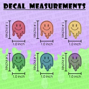 Product details for Rainbow Melting Smiley Face Mini Decal Pack.